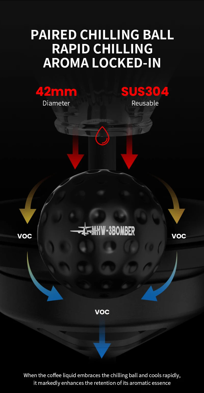 MHW-3BOMBER Pour Over Chilling Ball 2 Pack Coffee Frozen Ball for Pour Over Coffee Stainless Steel Ice Ball Home Barista Tools